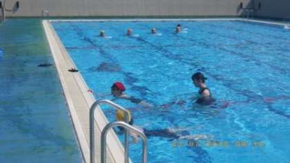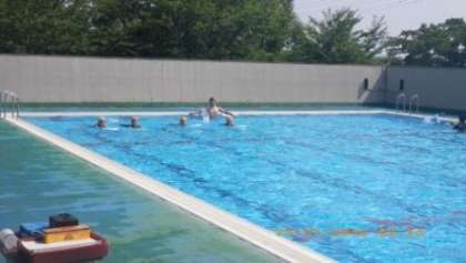 猛暑の中、絶好の水泳日より。初心者対象の水泳教室が行われました。生徒達は、泳ぎが上達したいと熱心に指導を受けていました。