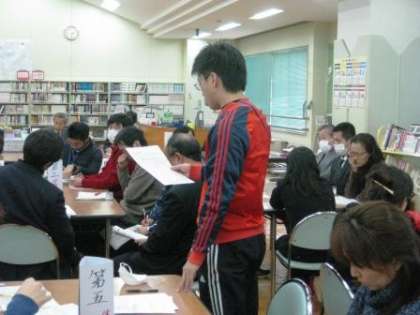 学習、健康、生活など6つのテーマで小中3校の先生方が分科会で話し合ったことを、全体会で報告している様子です。次年度はもっと協力・連携していけるといいですね。