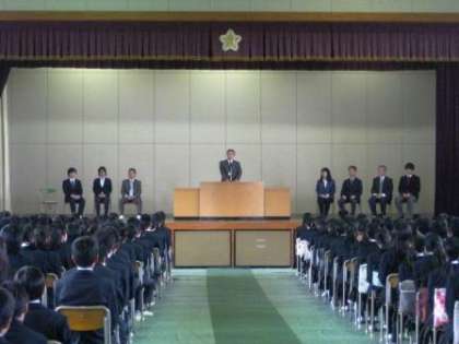 本日、上柚木中学校では離任式がありました。お世話になった先生から心に残るお話を伺えました。3回に分けて紹介します。