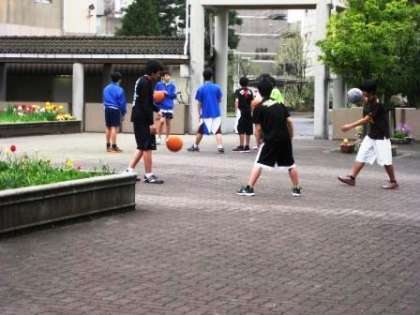 次は、バスケット部の男子の様子です。黙々といつも練習に励んでいますね。次の試合はいつかな?頑張ってくださいね。