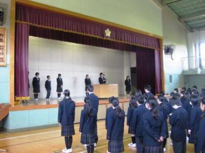 昨日は生徒会朝礼がありました。生徒会長の話、また各委員会の委員長が決まり、今年度の前期の活動についてそれぞれ話がありました。これから頑張ってくれる上柚木中学校のリーダーです。全校生徒のみなさんご協力をお願いします。