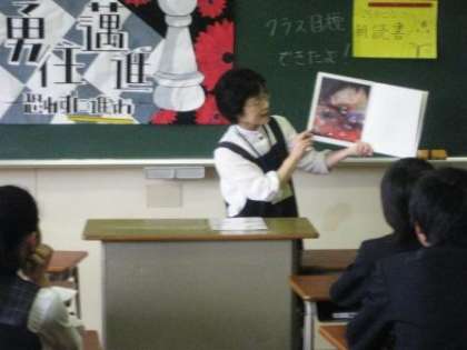 木曜日は学校司書さんの勤務日です。今年度は木曜の朝読書の時間に、1クラスずつ「読み聞かせ」を行います。今朝は3年1組で芥川龍之介の「蜘蛛の糸」を朗読していただきましたが、生徒は熱心に聞いていました。ご覧ください。