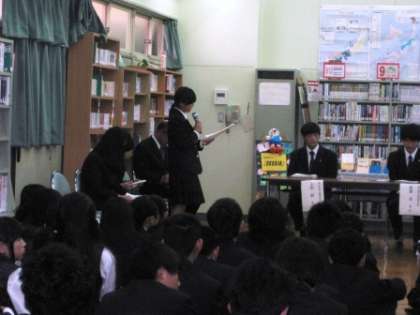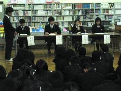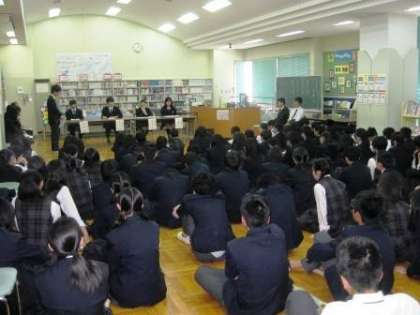 学校公開日の3校時、3年生は4名の卒業生を迎えて受験の体験など聞くことができました。卒業生(高校3年)からは自分の進路は他人任せにしないこと、自分に責任をもつこと等、熱心に語っていただきました。卒業生の皆さんの立派に成長している姿にウルウルときました。3年生も熱心に聞いている姿にも感動しました。