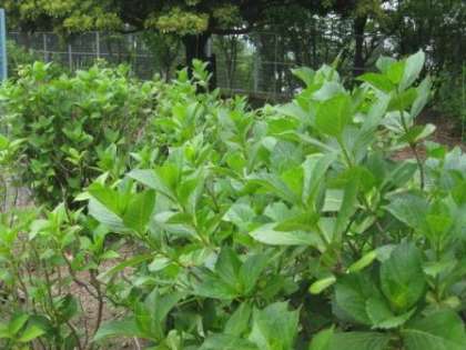 本校の自慢のあじさいがすくす葉を広げています。つぼみもそろそろ顔を出してきました。例年なら6月中旬から下旬に満開のあじさいが楽しめます。その時期には保護者、地域の皆様にもお知らせしますので、ご鑑賞ください。