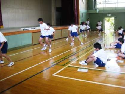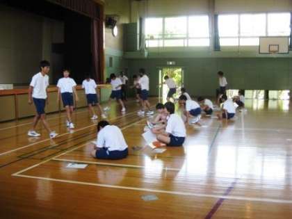 続いて、数学の少人数の授業と体育の授業です。体育は反復横跳びをしていました。
