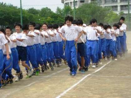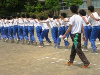 今日は3年生が学年練習を行いました。画像は4校時の大ムカデの練習の様子です。掛け声に合わせて真剣ですね。