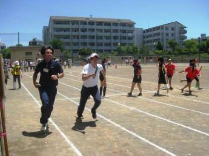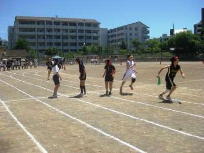 体育祭の様子、最後の記事になります。各部活動対抗のリレーはそれぞれ部のユニフォームなど楽しませてくれます。先生方も2チームが参加していて、生徒たちにとっても楽しさが増したようです。