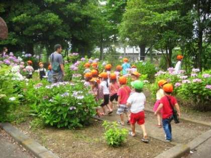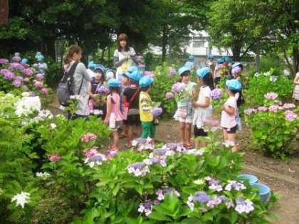 今日は、保育園の子供たちがあじさいを見学に来てくれました。園児も引率の先生方もたくさんのあじさいに驚きの声を上げていました。ご覧ください。