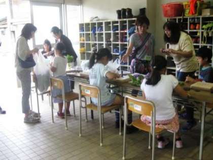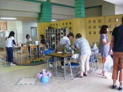 心配された雨も上がり大勢の方があじさい祭りに来てくれました。玄関ではこんなほほえましい光景も見られました。