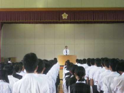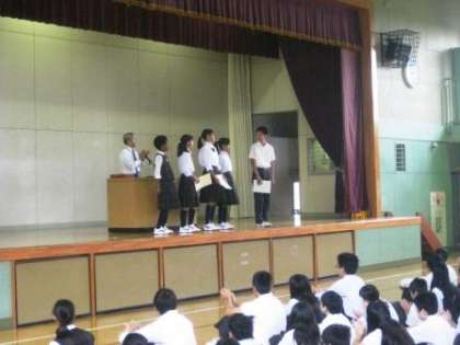 昨日(9/29)は学校朝礼がありました。校長より秋の交通運動と防災についての話です。この時期は日が暮れるのがどんどん早くなります。また自転車の乗り方にも十分注意が必要です、十分気をつけてください。それからバドミントン部、陸上部の活躍が紹介され賞状が手渡されました。