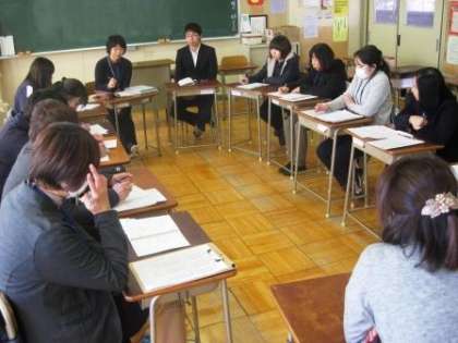 生徒下校後は小中の先生方が6つの分科会に分かれて研修テーマに基づいて熱心な話し合いが行なわれました。ご覧ください。