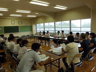 児童館の館長さんをお招きして、上柚木夏祭り第1回中学生実行委員会を開きました。