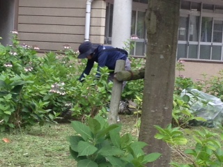 本日、あじさいの剪定が行われました。校内外のあじさいの木に残っている花を切り、次年度の開花を促進するための剪定です。文化委員のみなさんやガーデニングサークルのボランティアの皆さんのおかげで、次年度への準備ができました。ありがとうございました。