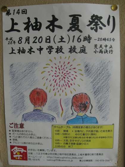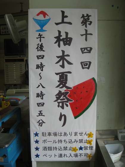 8月20日、荒天のため中止になってしまった夏祭りで掲示する予定だった看板とポスターです。とてもきれいに作られています。