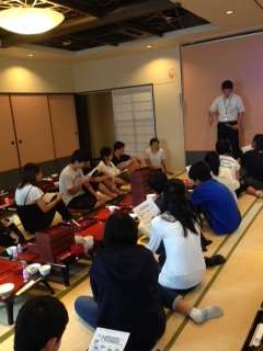 今日の班行動で必要な携帯やバスチケットの説明を受ける行動班長たちです。安全に留意していくことを再確認しました。