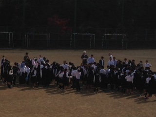 日本における最近の地震の状況を鑑みて、昼休みに突然地震の警戒解放が出されたときに自分自身の身を守る行動をどのようにとったらよいのかを考える避難訓練を行いました。大きな揺れの時間に周りの危険状況を回避する行動を考えたり、頭を保護するために防災ずきんを着用したり、机の中に入ったりと各自がそれぞれ自分の安全確保のために行動を行っていました。