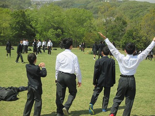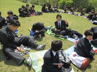4月11日に1年生が上柚木公園で昼食を食べました。