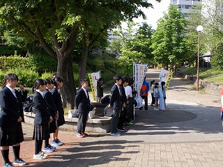 毎月1回小学校と連携してあいさつ運動をしています。生活委員会とボランティアが参加してくれました。