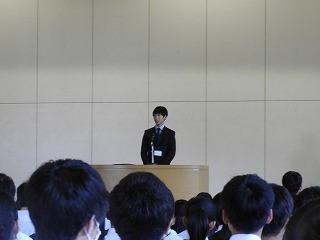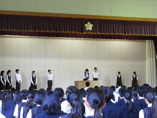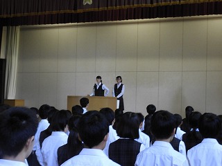 生徒会朝礼が行われました。教育実習生のあいさつもありました。