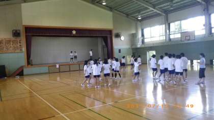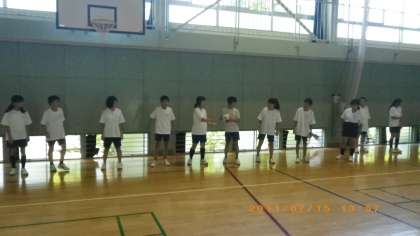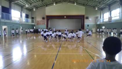 7月15日の5校時、1年生が体育館で学年レクを行いました。この日のために、学年委員さんが、放課後の時間を使い、準備をしました。全員ジャンケン、○×クイズ、爆弾ゲーム、□から○への4つの、ゲームをしました。先生も参加し、1年生全員が楽しんでいました。学年委員さん、ご苦労様でした。