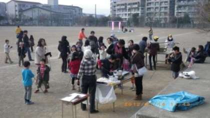 今年も、塚の火が落ちるまで由木児童館の方々が大縄飛び、独楽回し、かん玉などの遊びを提供してくれました。