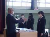 3月25日(金)体育館 修了式を行いました。 各学年の代表生徒が修了証を...