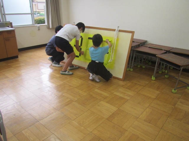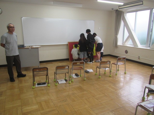 得点係はくぬぎ教室で得点の表示練習をしていました。