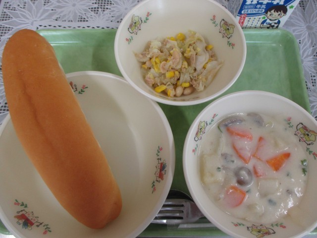 そして、きのこはカロリーがひくいので、たくさん食べても太りにくいので、ダイエット中の大人にも人気です。今日の給食にも、秋のきのこを使って「クリームシチュー」を作りました。