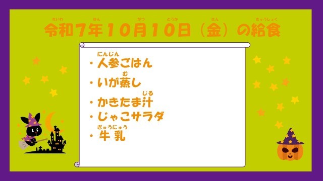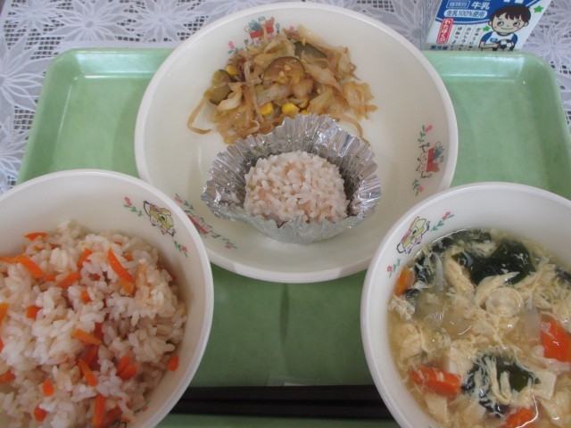 今日の給食は、にんじんをたくさん使って作りました。よく噛んで、たくさん食べましょう。