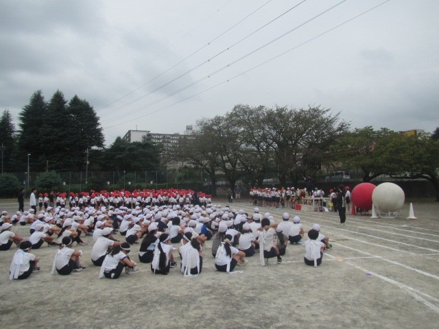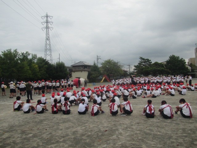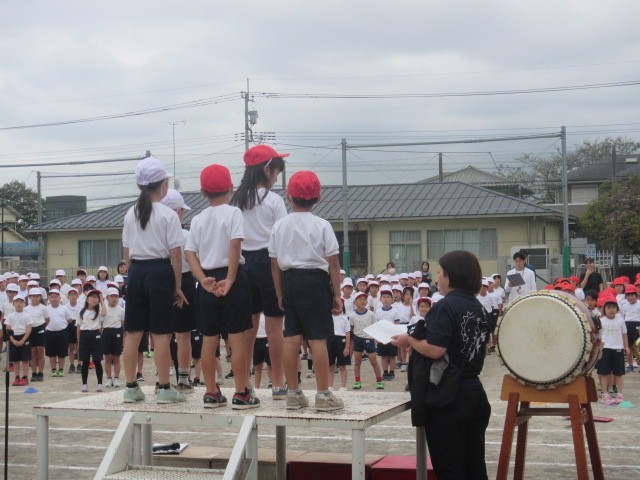 校長の話、優勝杯・準優勝は返還、運動会の歌(写真中・下)などを練習しました。