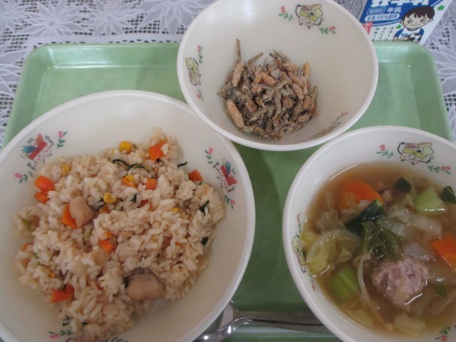 そして、肉団子には体を丈夫にするたんぱく質が入っています。この肉団子は、もちろん調理員さんが1つずつ丁寧に丸めて作った手作りです!白菜と肉団子のうまみがぎゅっとつまったスープをしっかり味わって食べてくださいね。