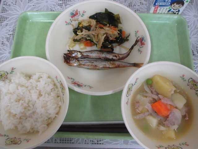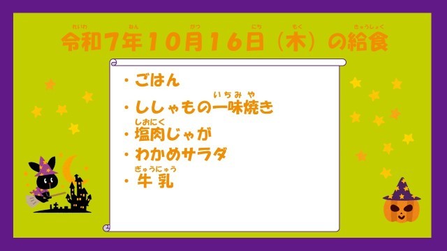 今日の給食は、秋の味覚を楽しめる「塩肉じゃが」です。「塩肉じゃが」は、しょうゆではなく塩で味つけされていて、野菜の自然な甘みがよくわかる一品です。さっぱりしているのに、しっかりうまみがあって、ごはんにもぴったりです。