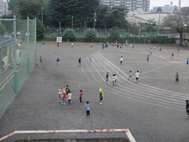 「(外で)あそべるぞ!」と分かると元気な椚田小っ子は校庭に多くの子どもたちが繰り出しました。