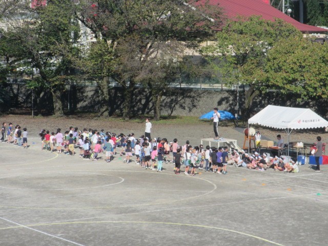 教室の南側に校庭がある小中学校が多いですが、椚田小は東西に長い敷地なため校庭が東側、西側に校庭があるため教室から校庭が見えません。