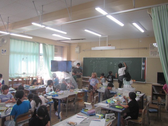 そのためか、校庭では運動会! でも教室ではいつも通り落ち着いて学習ができています。(写真中 3年生理科の実験中)