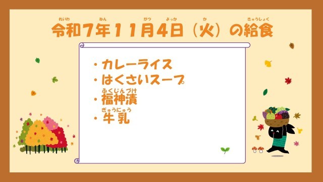 給食は、たくさんの人が力を合わせて作ってくれています。作ってくれた人の気持ちに感謝して、今日もたくさん食べましょう。