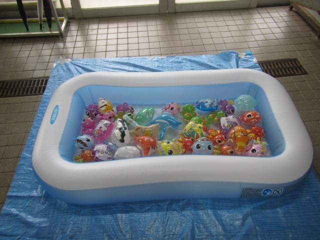 西昇降口のヨーヨー釣り(写真上)お気に入りの一品をゲットして、みんな満足げに見せてくれました。