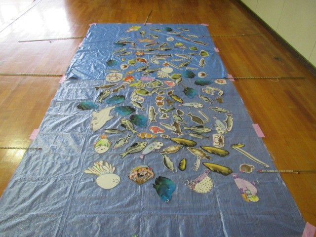 体育館ステージ上ではつりゲームが行われています。(写真下)