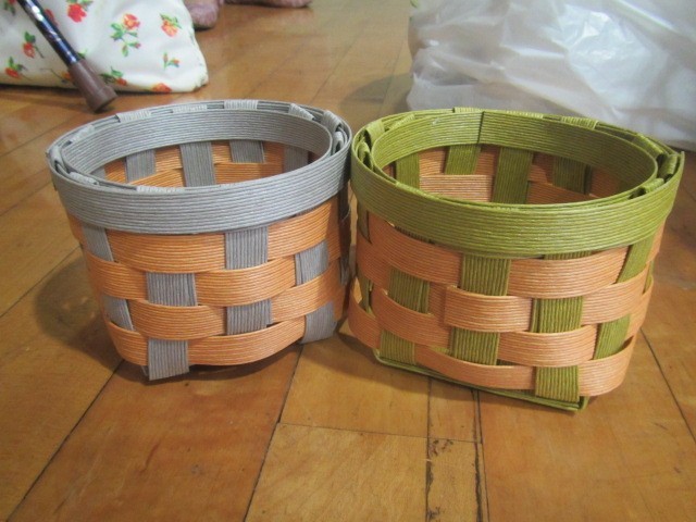 写真のような籠(小物入れ・ボックス)を編んで作っていました。