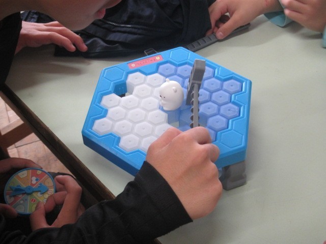 写真上:4階家庭科室ではテーブルゲームコーナーでした。