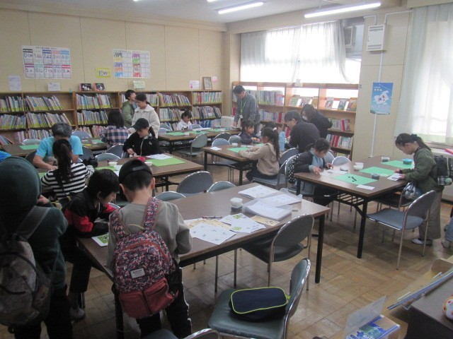 写真中:2階図書室では五目並べ(連珠)を行っていました。