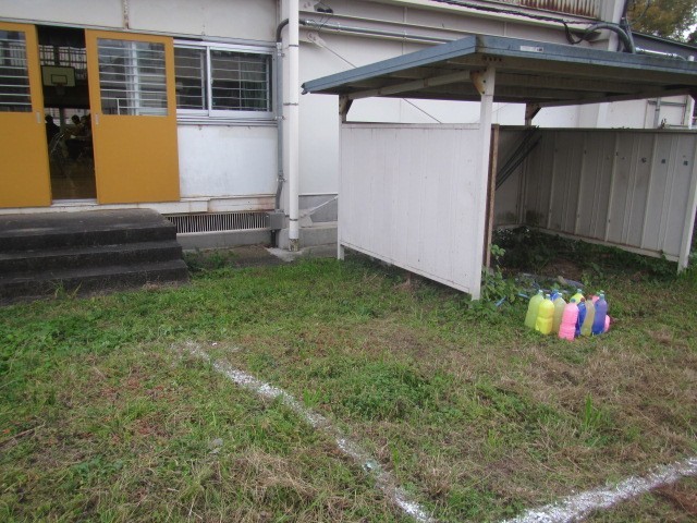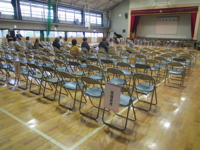 保護者の皆様の朝の受付は飼育小屋を回っていただいて、体育館上手後ろ(北側の後ろの扉)からご入場いただけます。