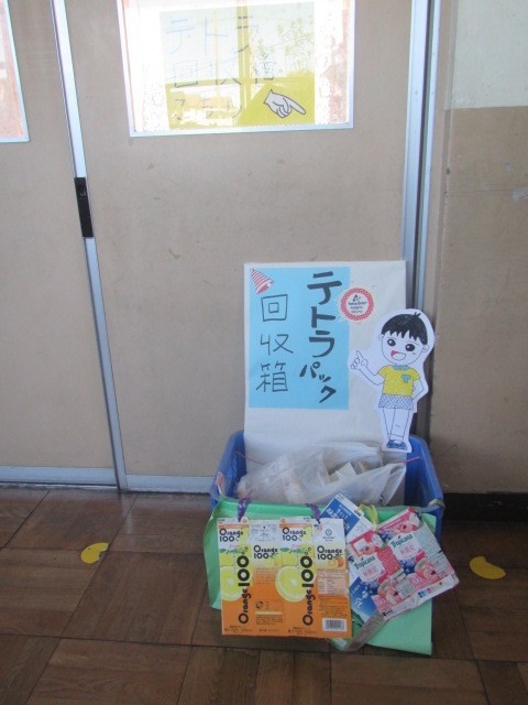 PTA会室前ではいつものようにテトラパック等の回収ボックスが出ています。