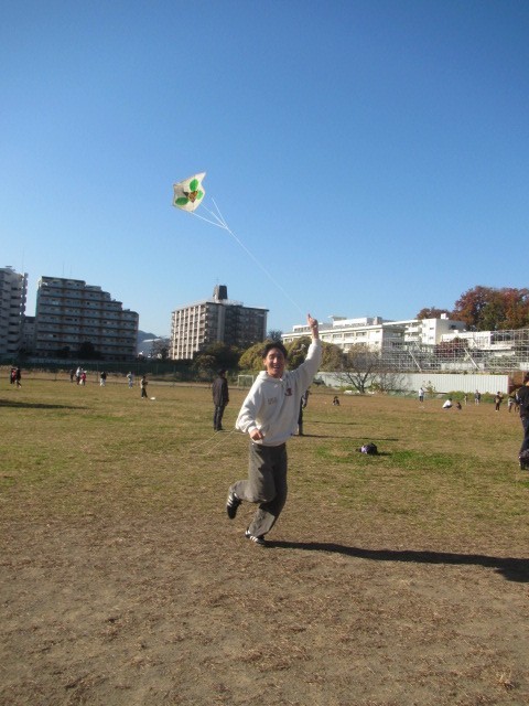 椚田小の校庭上空に送電線があるので、万が一に備えて、近くにある東京高専さんのグラウンドをお借りして行いました。