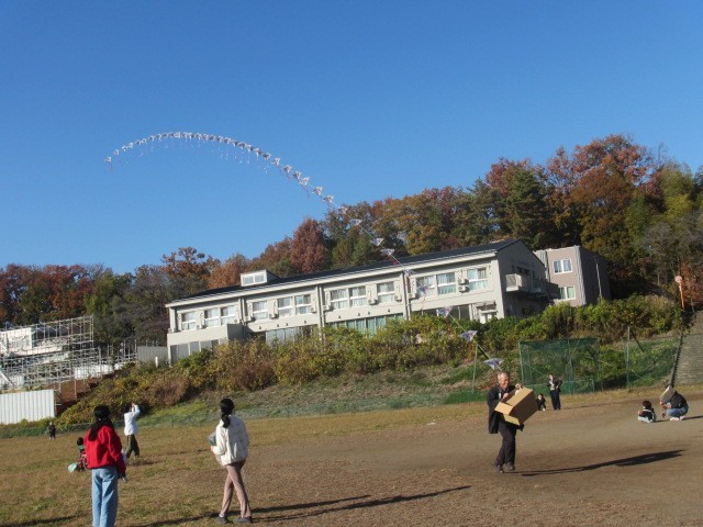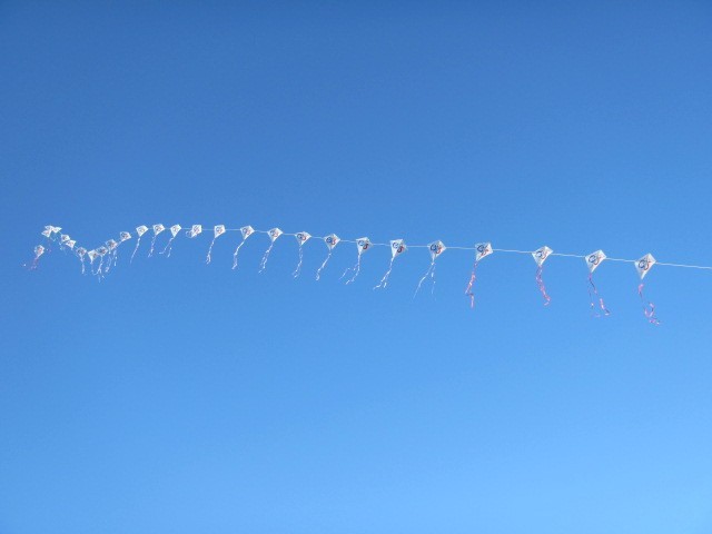 日本の凧の会のU川先生が連凧を揚げてくださいました。