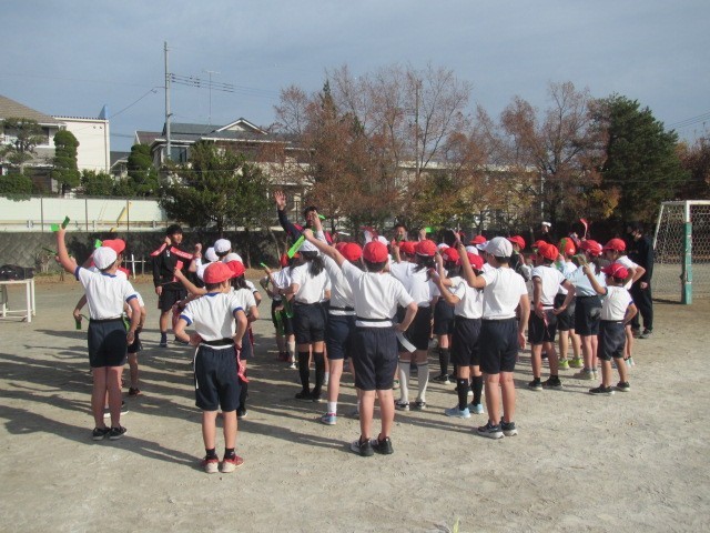 12月11日(木)2時間目の体育のタグラグビーの授業に、日野レッドドルフィンズのコーチや選手の皆さんが来校してくださいました。