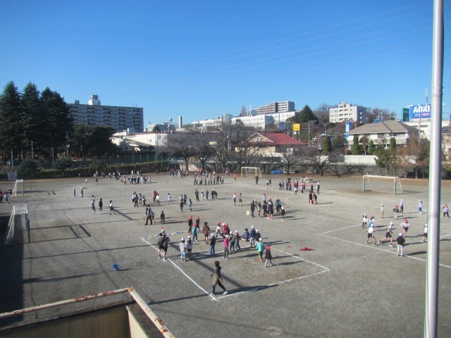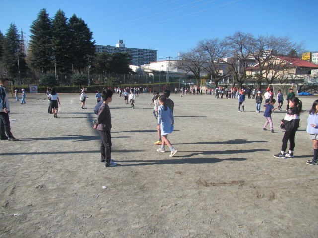 半分は校庭で遊びました。