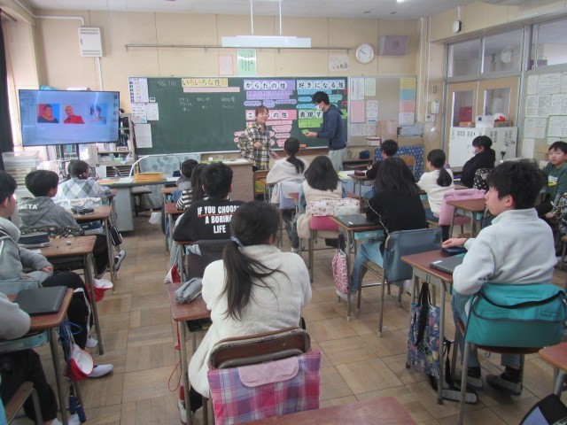 6年生の3クラスすべてに、主任養護教諭のK﨑先生からお話があり、今日は6年1組に指導しているところを取材しました。