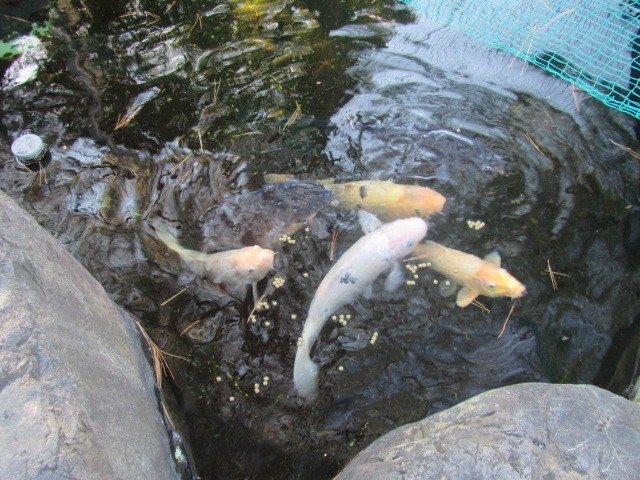 写真上:鯉も元気に泳いでいます。