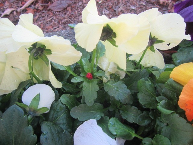 中:プランターにイチゴの実?